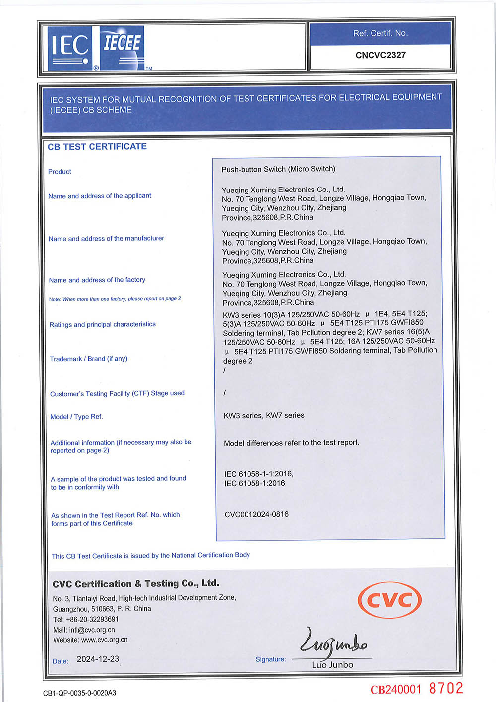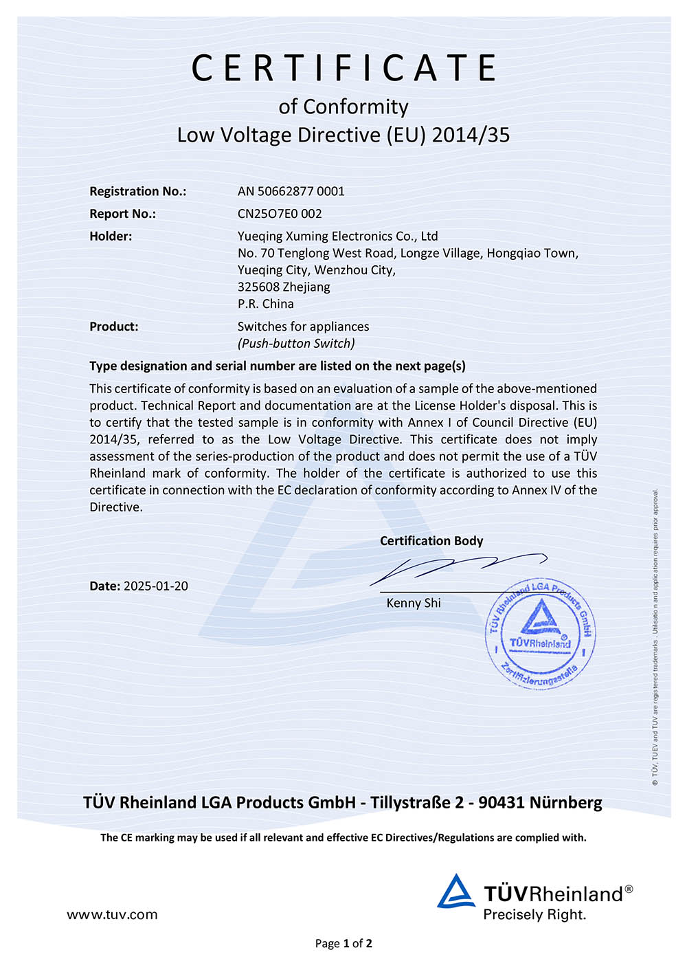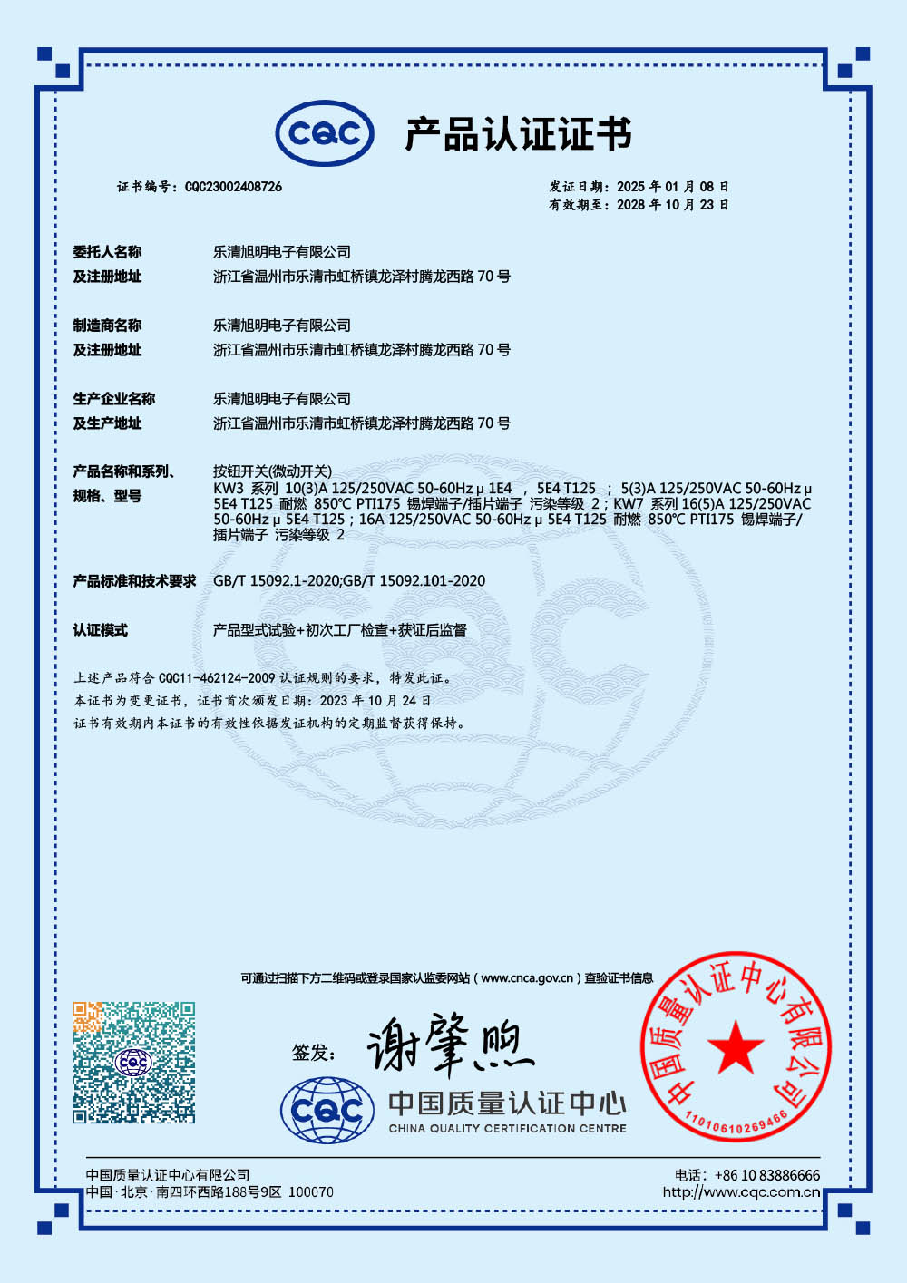 About us 关于我们 公司简介 车间设备 荣誉资质 面包屑 首页 > 关于我们 > 荣誉资质 Honor and qualification 荣誉资质 TUV-R 50662851 0002 TUV-R 50662851 0001 TUV-AN 50662877 0001 CQC产品认证证书-en CQC产品认证证书-cn 乐清旭明CB证书 商标注册证 首页 前一页 1 后一页 尾页
